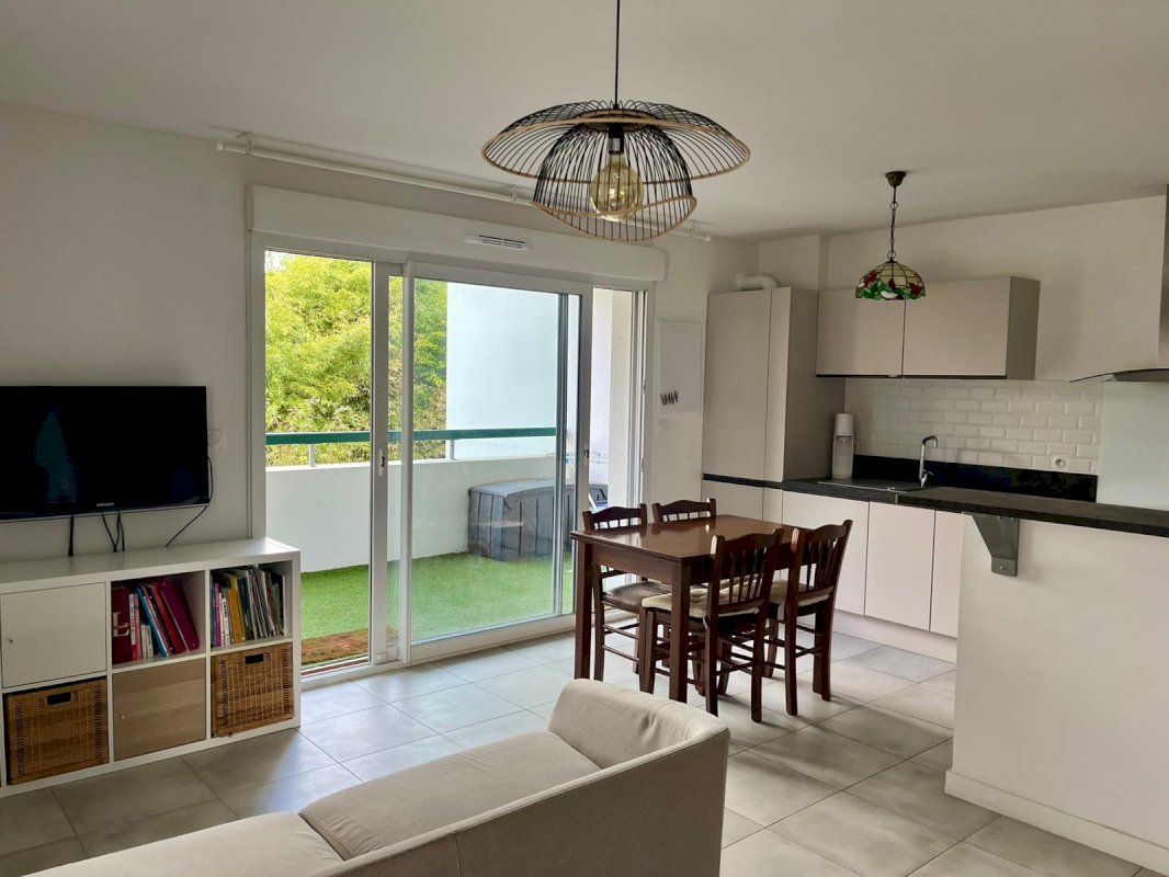 Grand T3 traversant situé au rez de chaussée, il comprend une cuisine moderne équipée et un séjour spacieux de 27 m² ouvrant sur un balcon surélevé de 11 m² vous offrant une vue sur la végétation, sans vis à vis.