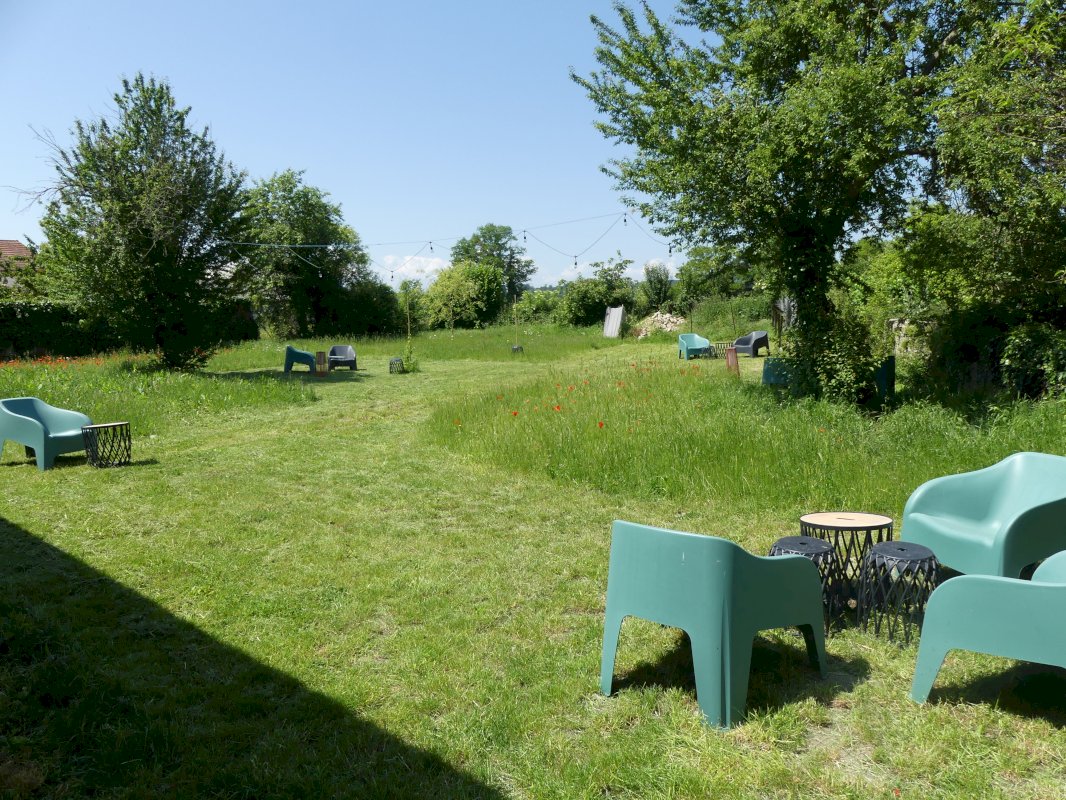 Un jardin clos de 750 m², exposé sud-est, avec terrasse et patio de 300m² sur un terrain de 1350m².