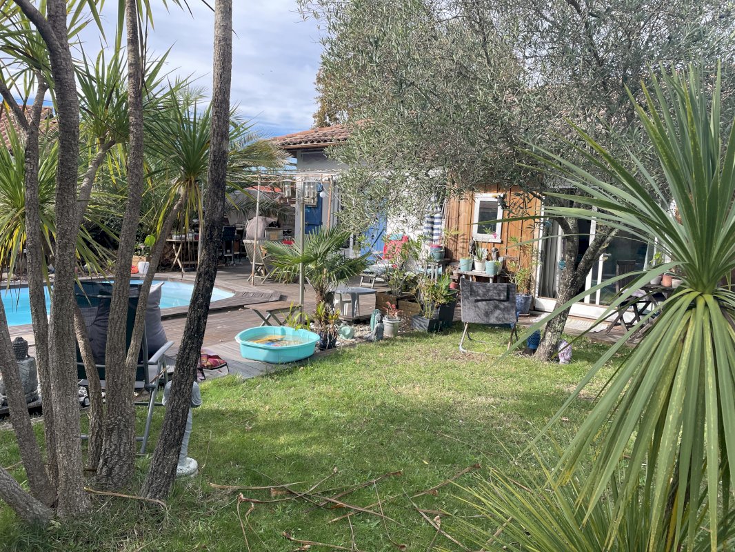 Maison au calme, centre-ville Biscarrosse bourg, 720 m² terrain, véranda, piscine, 2 salles d'eaux, 3 chambres et 1 bureau.