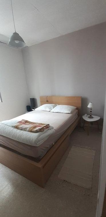T2 comprenant 1 grande chambre, 1 salle de bain avec baignoire et toilettes, 1 cuisine équipée ouverte sur salon dans residence calme du centre ville.