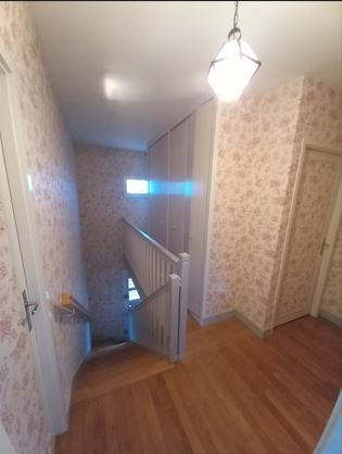 Accès à l’étage par un escalier en chêne en parfait état. L'espace couloir donne sur 2 chambres, un bureau de 8.88 m², salle d'eau, débarra attenant et une grande penderie.