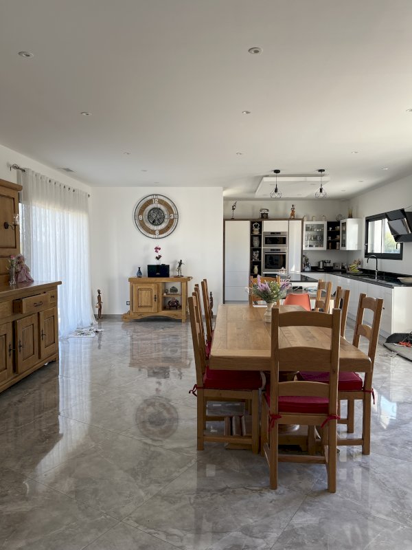 Cuisine aménagée ouverte sur le salon salle à manger qui vous fait une belle surface.