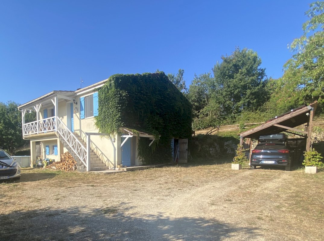 Promontoire sur la nature environnante protégée (Natura 2000 garantit l'absence de constructions alentours), cette maison des années 1980 vous offre une vue fantastique, un confort douillet (cheminée efficace, chauffages électriques basse consommation), une terrasse où il fait bon vivre, un kiosque idéal pour l'apéritif, un terrain (pentu) de peu d'entretien, une piscine hors-sol sur le paysage et un silence absolu (excepté le chant des oiseaux).
