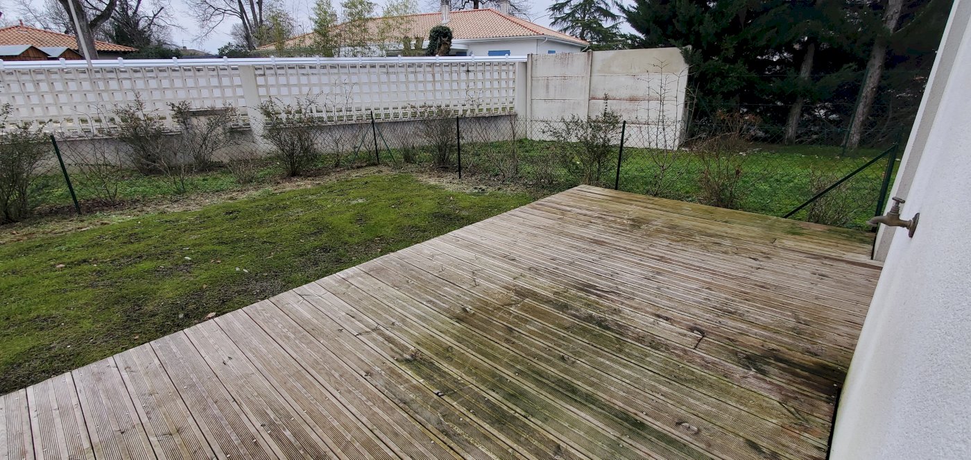 Les chambres et la pièce de vie donnent sur le jardin avec terrasse bois au calme et sans vis-à-vis de 60m².