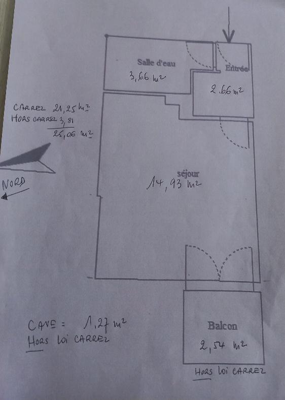 Studio centre-ville ARCACHON – Disponible et habitable SANS TRAVAUX. Surface 21,25 m².