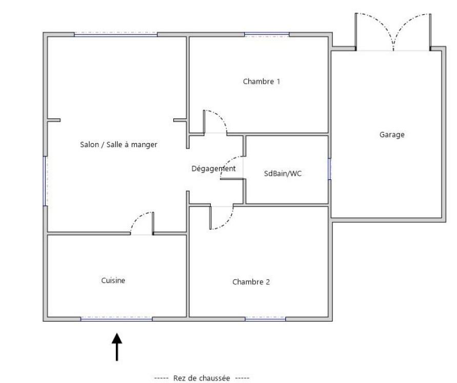 Proche du quartier du Mauret, maison de plain pied typique du bassin, de 3 pièces et de surface habitable de 66 m² (cuisine séparée aménagée, séjour - salle à manger, salle de bain avec wc, deux chambres) - Garage accolé de 15 m² (possibilité extension).