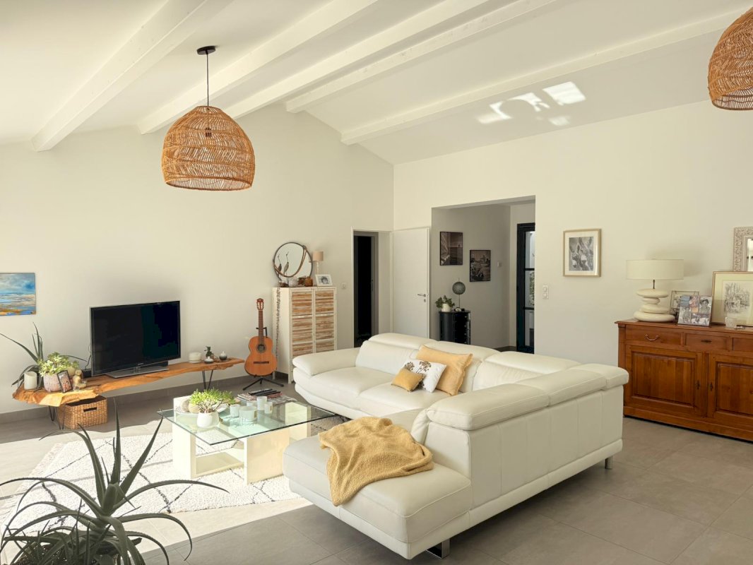 Vous serez séduit par cette douceur de vivre dès l'entrée, ces espaces épurés, ces volumes. Goûter à ce bonheur de vivre dans cette magnifique maison contemporaine de 2017 de plain pied où l'on vit dedans dehors, ces apéros dînatoires autour de l'îlot central cuisine spacieuse avec de nombreux rangements. Vous bénéficiez de ces 2 espaces nuits distincts, 2 chambres avec placards, dont une accès indépendant vers l extérieur avec 1 salle de bain et douche, 1 suite parentale avec douche à l'italienne, 2 wc.