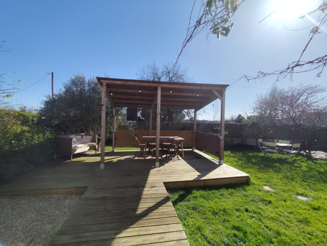 - Une charmante terrasse en bois avec la possibilité de végétaliser son toit, prises de courant et éclairage.