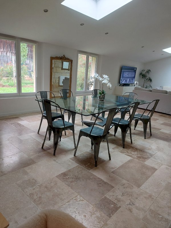 La maison comprend 3 chambres, un bureau, 2 points d'eau, 2 wc, grande cuisine 20m², salle à manger 46m².