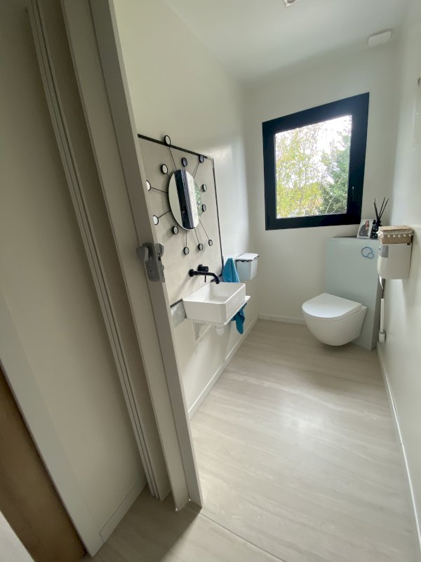 3 chambres toutes équipées de douche et baignoire, 3 toilettes, une piscine, un garage à vélo.
