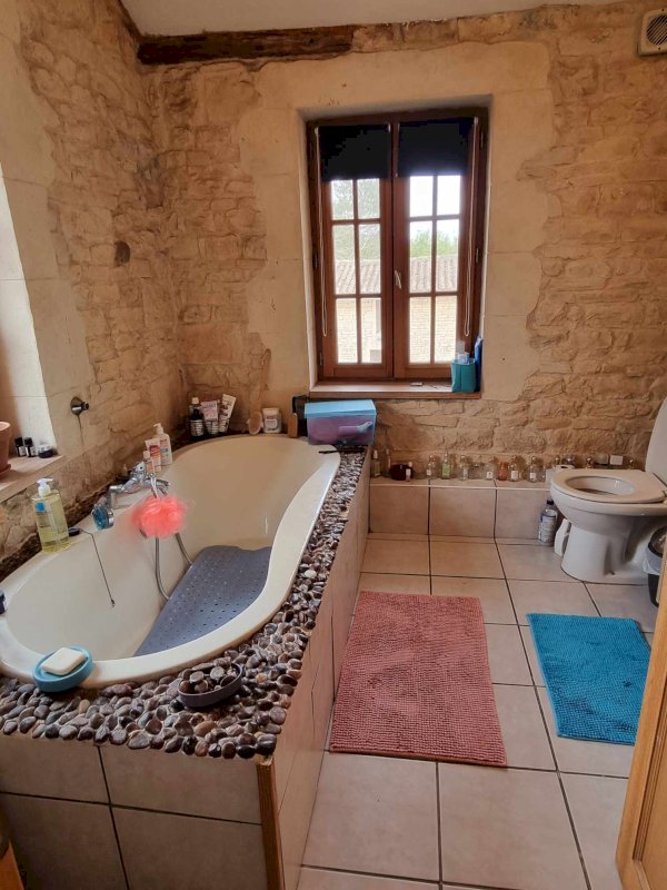 • 2e maison : 162 m² habitables comprenant une cuisine 17 m² aménagée et équipée, salle de bain avec WC, buanderie, grand séjour 46 m² avec poêle à bois, murs pierres et poutres ouvrant sur un jardin clos et privé. A l'étage : palier desservant 4 chambres dont 2 avec salles d'eau + WC avec lavabo. Ouverture double vitrage et chauffage central fioul. Dépendances 24 m² avec 2 mezzanines à usage atelier d'artiste. Petits toits en pierres, bûcher et terrain; le tout sur 6763 m². Diagnostic C et C.