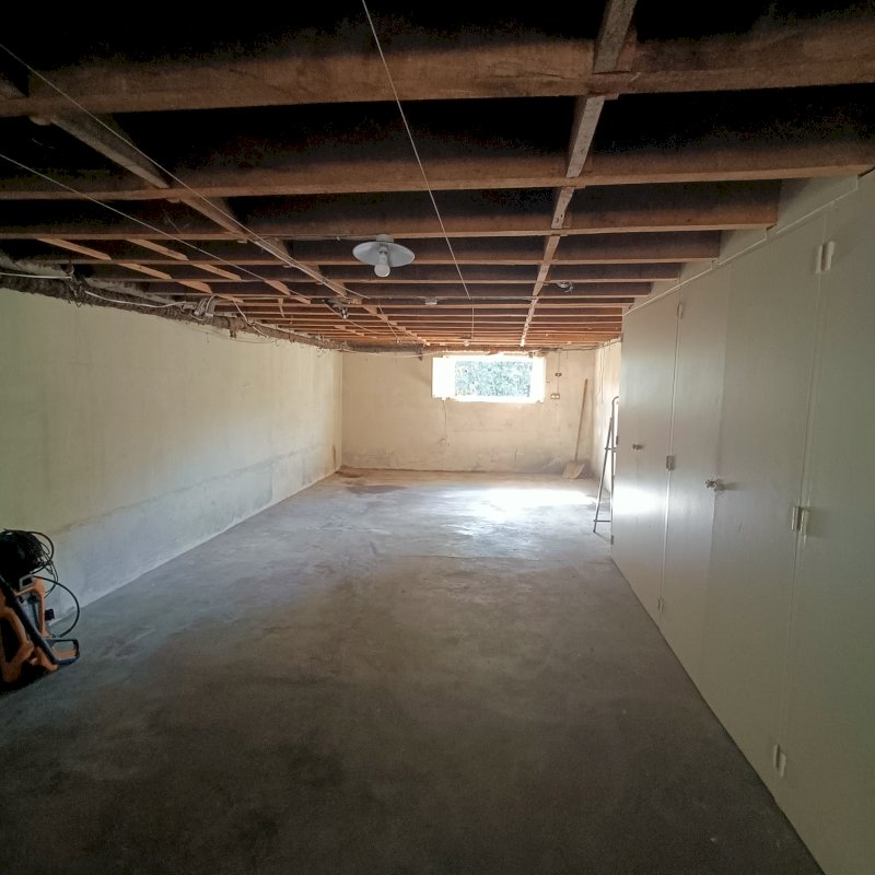 • RDC: Un sous-sol total composé d'un grand garage pour 2 voitures d'environ 40 m² avec grands et nombreux placards, une petite salle d’eau avec WC et douche, un couloir qui distribue un grand séjour cuisine d’été carrelé et chauffé de 31 m² avec accès direct sur le jardin et grands placards, chaufferie (chauffage central par pompe à chaleur. Présence de chaudières bois/ fioul). Escalier intérieur en chêne et ascenseur permettant l’accès à l’étage pour les personnes à mobilité réduite.