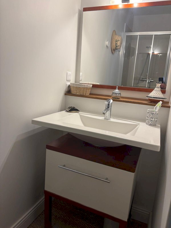 Maison de plain-pied composée d’une grande pièce à vivre avec cuisine américaine équipée et aménagée, de deux grandes chambres avec dressings et salles d’eau, ainsi que d’un cellier / buanderie avec WC. La dépendance peut faire office de troisième chambre, elle est équipée d’une salle d’eau et de son WC, mais actuellement servant de bureau (parfait pour les personnes à leur compte et/ou en télétravail).