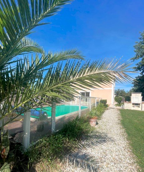 Extérieurs et confort : double terrasse carrelée de plus de 90 m², piscine creusée 8 x 4 m, sécurisée et aménagée, jardin clos de 600 m², sans vis-à-vis, avec barbecue en pierre, vue panoramique sur les vignes et un 1er cru classé, exposition idéale, aucun bruit, cadre paisible