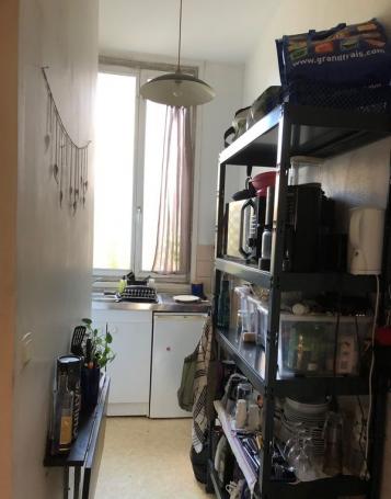 - d'une cuisine séparée (plaque électrique et frigo top) avec fenêtre donnant
