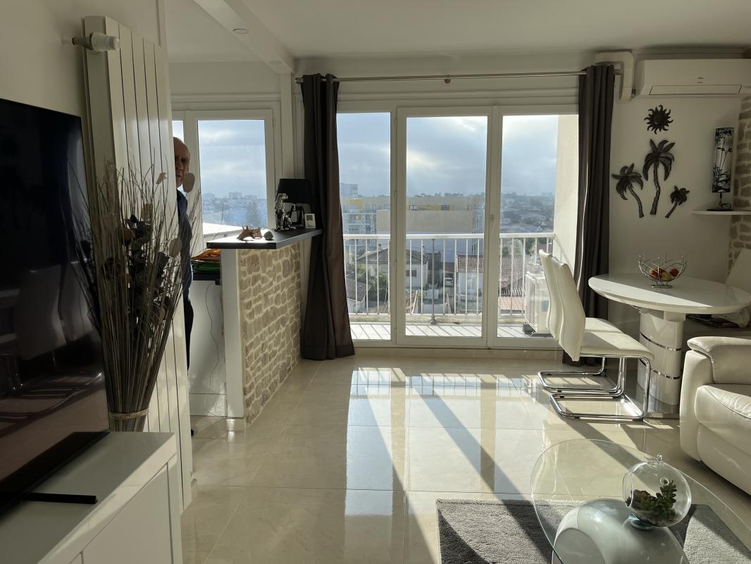 Une entrée avec placard, une cuisine aménagée et équipée très récente ouvrant sur un séjour trés lumineux avec un grand balcon.