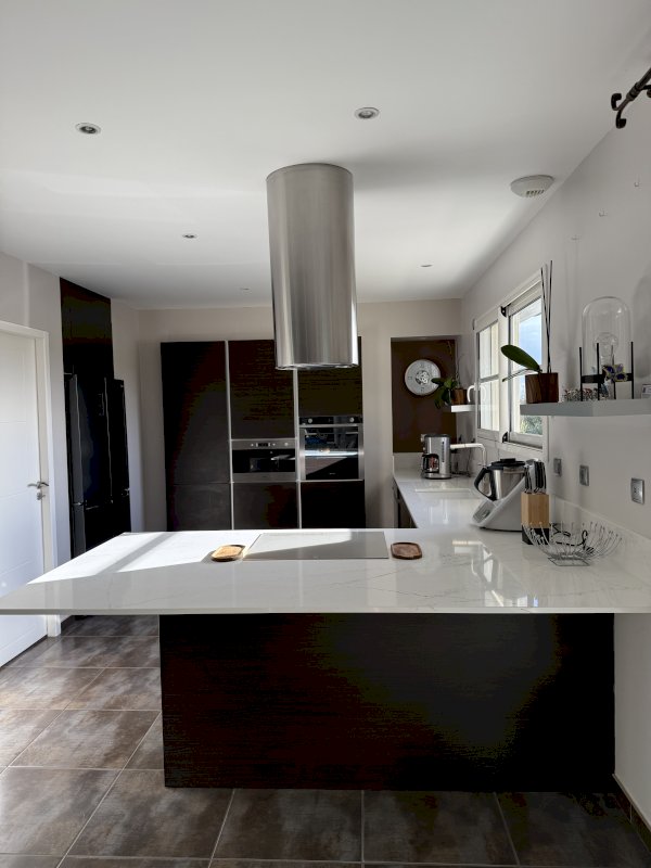 Maison équipée de domotique : portail et porte de garage automatisés, fermeture volets centralisée, système d’alarme et fibre optique.
