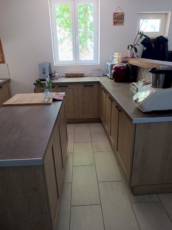 Ajoutez à cela une grange attenante qui permettait un agrandissement, une grande terrasse couverte qui donne sur le jardin de 3000m² sans vis à vis et un bloc de deux garages ouverts et un atelier. Taxe foncière basse, pour un prix de 180000€.