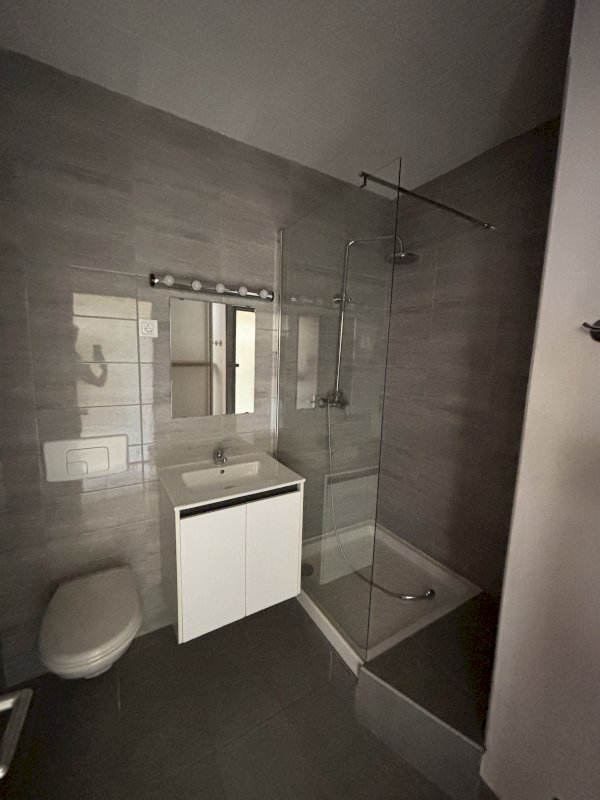 La salle de bain est équipée d’une douche ouverte de 90 cm.