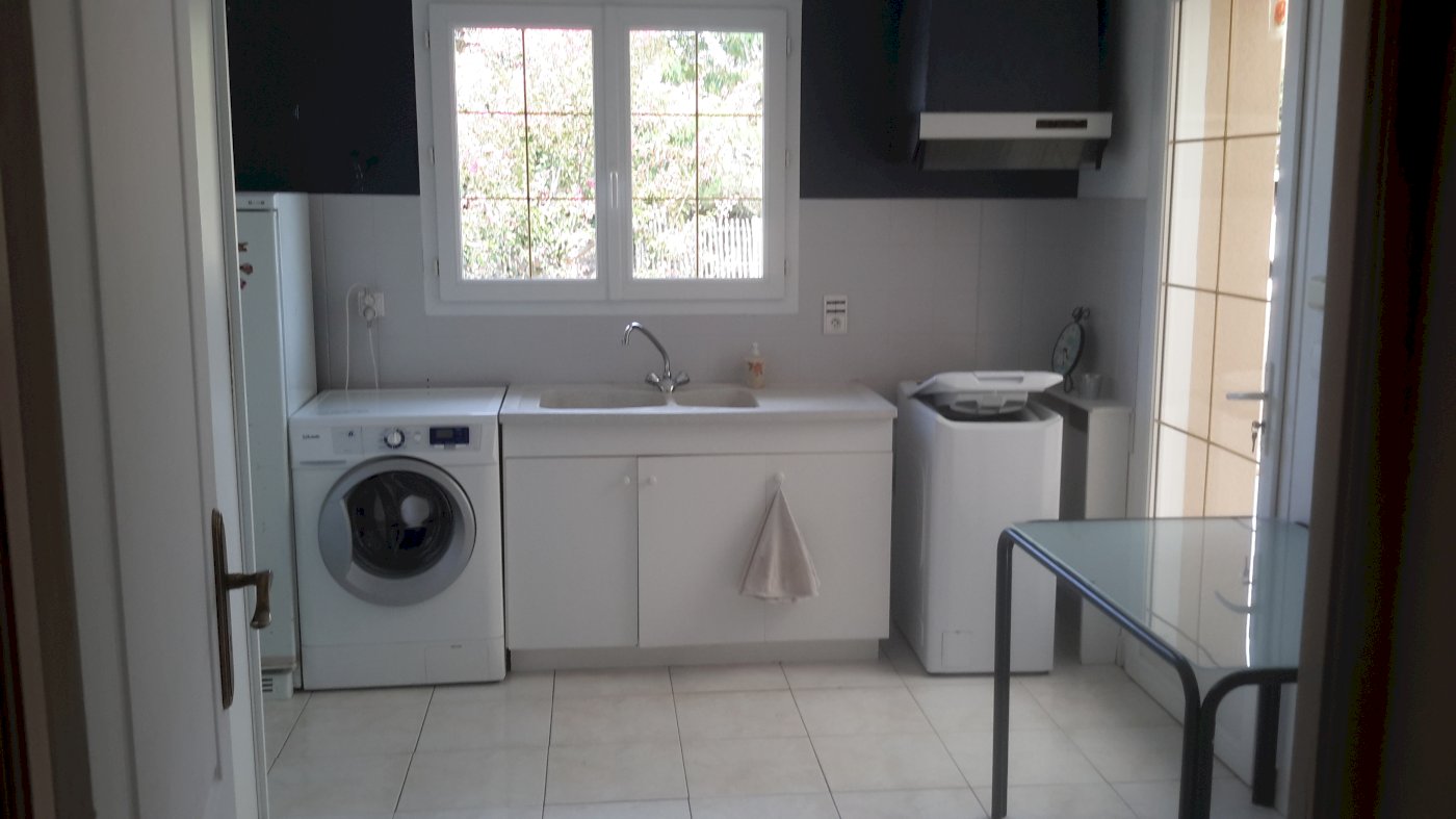 Garage de 28 m² hauteur camping car attenant la maison, terrain clos de 988 m² avec dépendance de 35 m², chauffage pompe à chaleur.