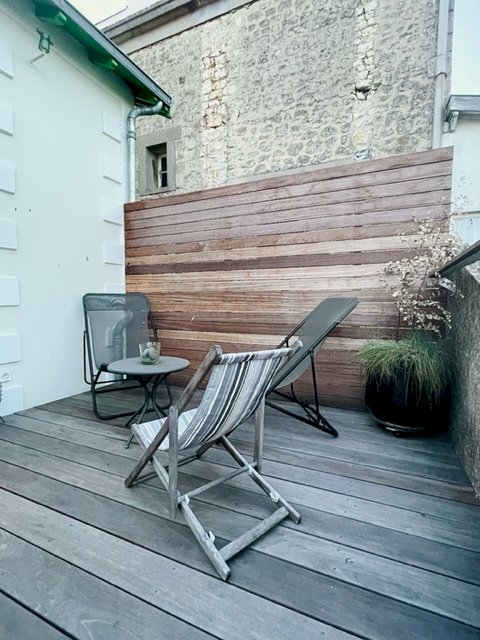 • Une pièce de vie lumineuse, à l’ambiance cosy, ouverte sur la cuisine et donnant accès à une agréable terrasse en bois.