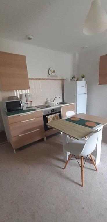 T2 comprenant 1 grande chambre, 1 salle de bain avec baignoire et toilettes, 1 cuisine équipée ouverte sur salon dans residence calme du centre ville.