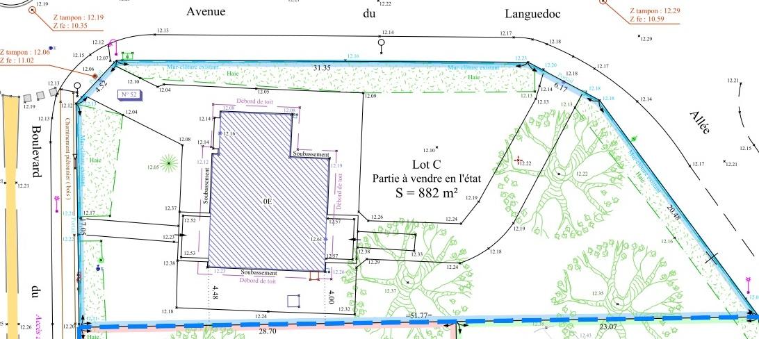 Le terrain est de 882 m² ; sa partie arrière (550 m²) est arboré et calme.