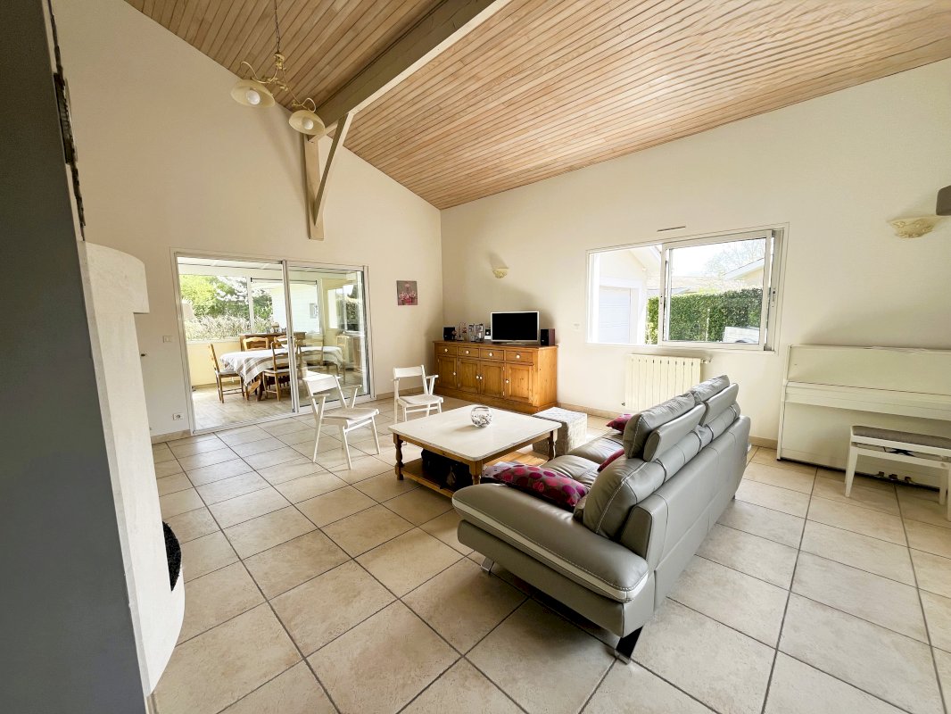 Elle se compose d’un grand séjour avec cuisine ouverte avec cellier, elle bénéficie d’une belle luminosité grâce à son plafond cathédrale, une vaste mezzanine, sa triple exposition : Est/sud/ouest et une véranda isolée et chauffée donne une vue imprenable sur le jardin verdoyant et sans vis-à-vis. L’espace nuit se compose de 4 chambres avec espaces de rangement et d’une grande salle de bain.