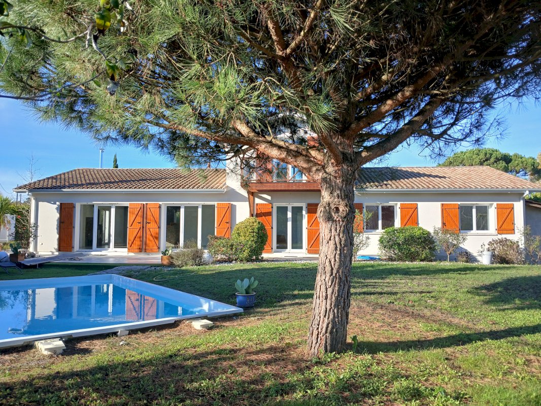 Maison traditionnelle à étage partiel, construite en 2015, offrant une surface habitable d’environ 195 m² (hors annexes) et de beaux espaces extérieurs avec piscine et terrasses.