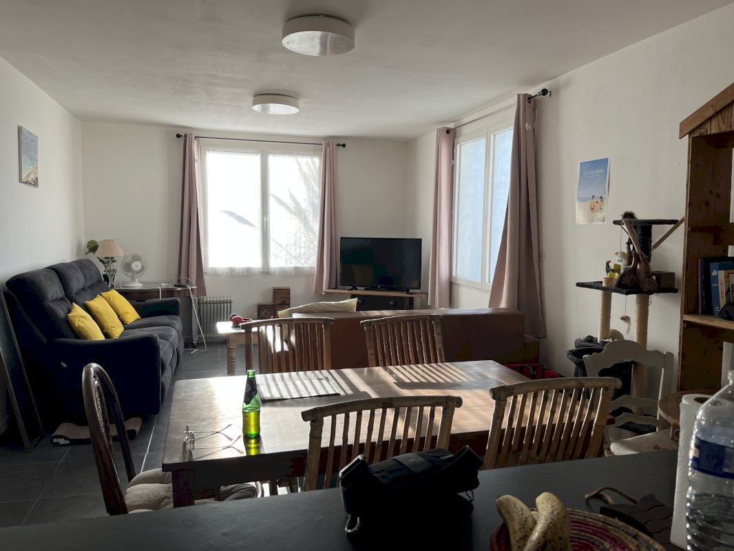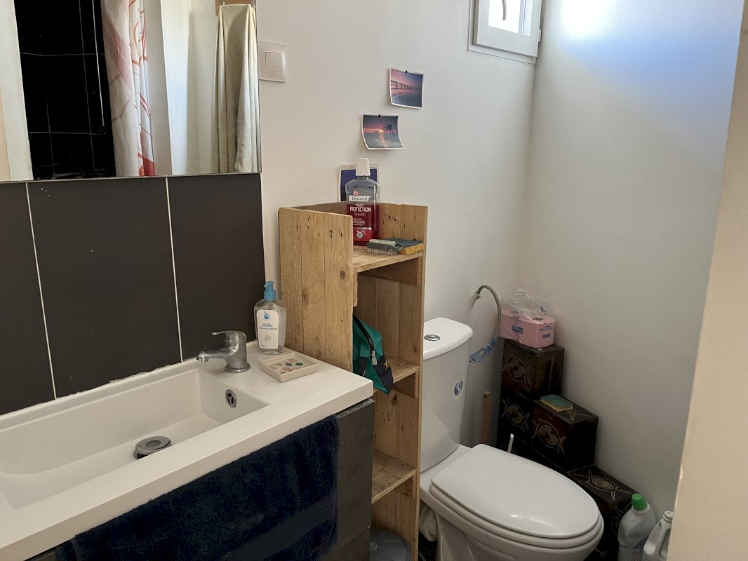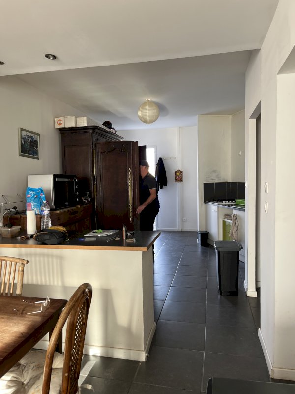 Petite Maison restaurée, composée d'une cuisine ouverte sur salon, séjour, une chambre, une buanderie, une salle d'eau avec petite terrasse devant et derrière ainsi qu'une place de stationnement privée.