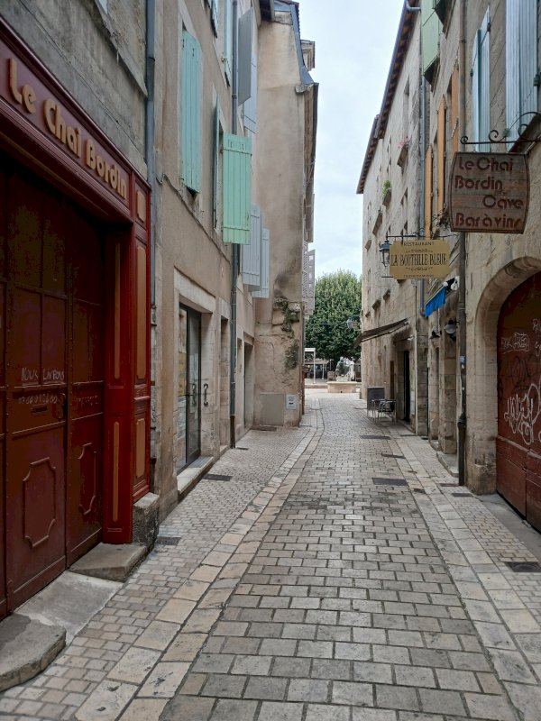 Coin cuisine, coin chambre, coin salon, le logement se situe dans rue piétonne, plein coeur historique classé, les 3 fenêtres donnent sur deux cours calmes.