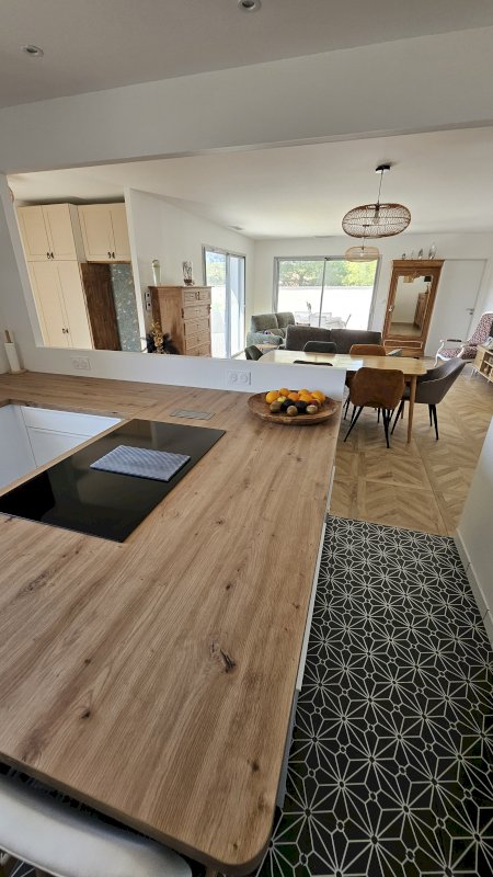 Un intérieur pensé pour le confort : Laissez-vous séduire par un vaste et lumineux espace de vie (salon/séjour), offrant un accès direct à la terrasse et la piscine.