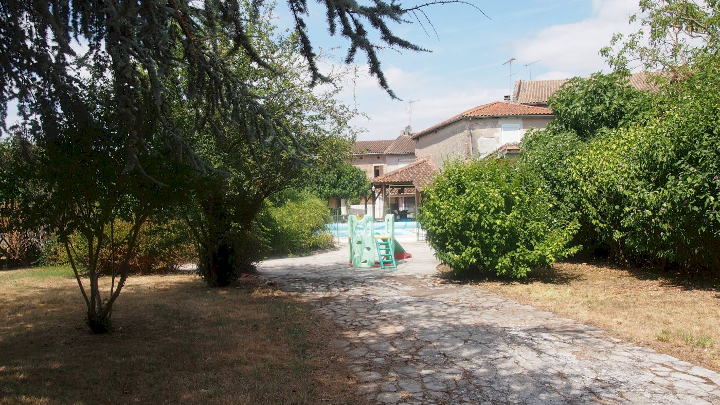 En enfilade, le jardin arboré, lui aussi, très agréable en toutes saisons. et le garage avec la machinerie de la piscine, il sert aussi de débarras . Un espace de parking est disponible juste à côté de la maison sur la place. Le chauffage est au gaz ( chaudière ventouse) avec une production d eau chaude.