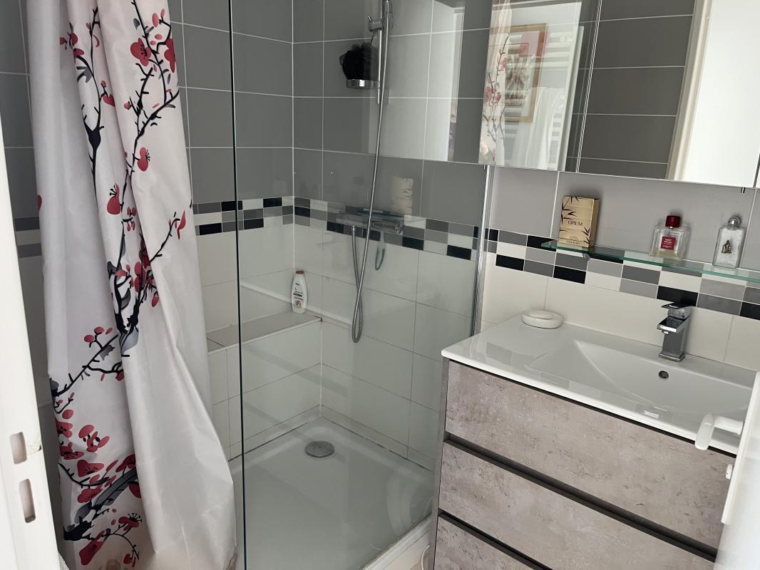 La partie nuit comporte une chambre avec dressing et rangements, une salle de douche et un WC séparé.