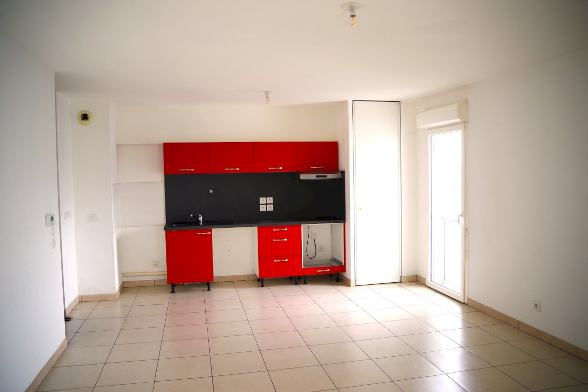 Entrée donnant sur les trois chambres avec placard intégré, WC séparés, grande salle de bain avec baignoire-douche et espace de rangement, puis sur un grand salon-salle à manger avec cuisine ouverte, complètement cerclé d’un large balcon-terrasse avec occultant. Ce grand espace de vie donne sur les espaces jardin et parking, tranquille et isolé de tout regard.