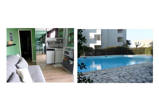 Ce studio comprend une pièce principale avec coin cuisine équipée, ainsi qu'une salle de bains. Il dispose d'un balcon de 5 m² offrant une belle vue sur le bassin pour les "p'tit déj au soleil".