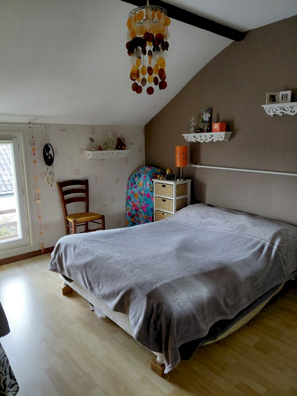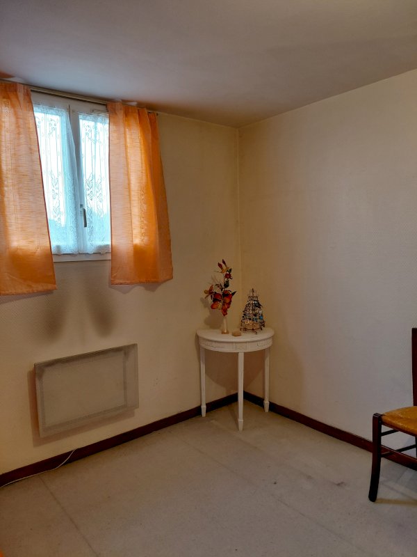 Terrasse entièrement carrelée avec pergola bioclimatique et petit terrain attenant.