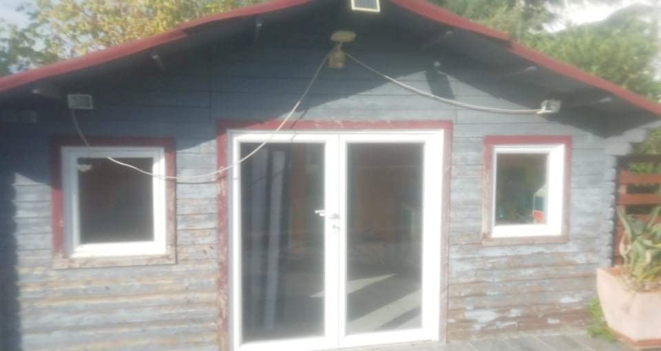 Une terrasse avec coin barbecue et un poolhouse qui est un petit studio indépendant.