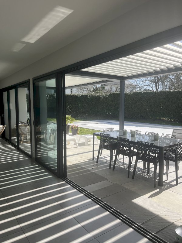 ✔️ Baies vitrées XXL donnant sur une terrasse et une piscine chauffée