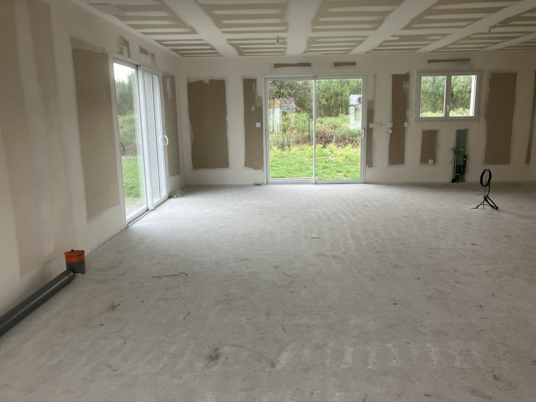 La maison est neuve et brut d'intérieur pour la mettre à vôtre goût, laissant aux acquéreurs le choix des peintures, sols et sanitaires. Grande pièce de vie lumineuse de 60 m² avec cuisine ouverte. La cuisine sera livrée (déjà payée), à montée soi-même, avec possibilité de changer la couleur des matériaux, avec un grand îlot central, nombreux rangements. Composée de 3 grandes chambres dont une suite parentale (sorties pour douche, wc, lavabo, sèche serviette et une fenêtre). Un grand cellier de 8 m², une grande SDB pouvant accueillir une douche, une baignoire, double vasque et sèche serviette, chauffage gainable air-air réversible par la suite, domotique complète de la maison contrôlable à distance. Dalle de garage de 19,9 m² déjà faite et conçue pour pouvoir éventuellement faire un studio locatif ou non.