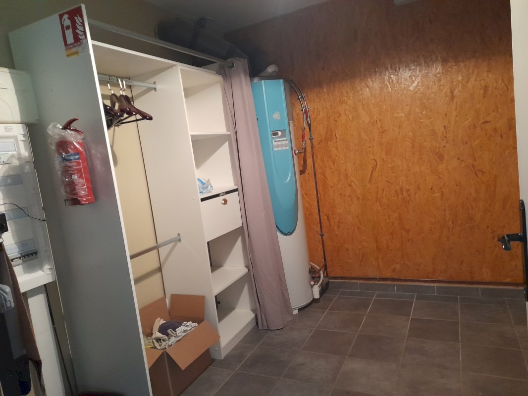Hangar de 80m² sol goudronné, panneaux photovoltaïques en toiture.