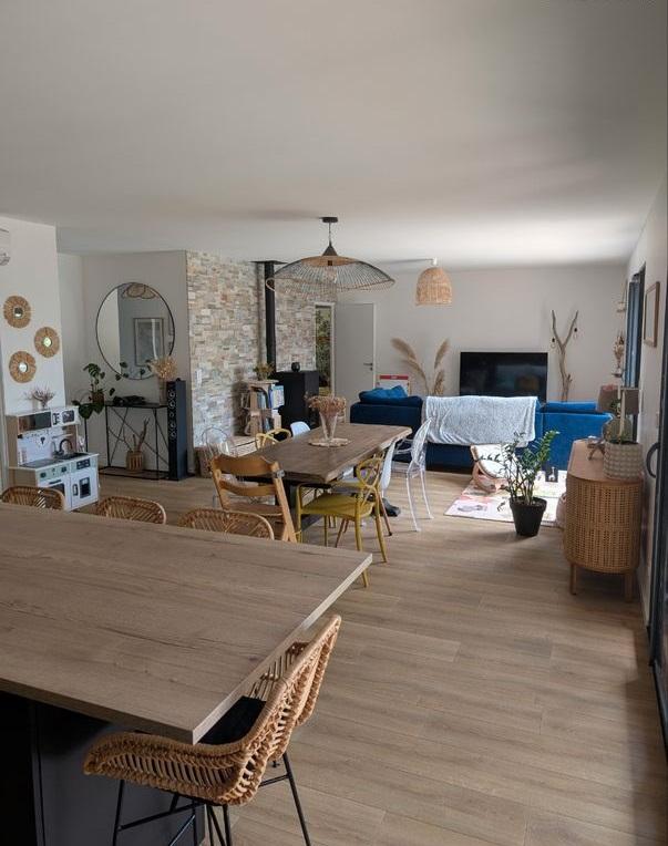 Elle est composée d'une grande pièce de vie de + de 50 m² avec poêle à granulés et climatisarion réversible, de 3 chambres dont 1 suite parentale avec dressing et salle d'eau ainsi que d'un cellier et d'une autre salle de bain avec wc séparé.