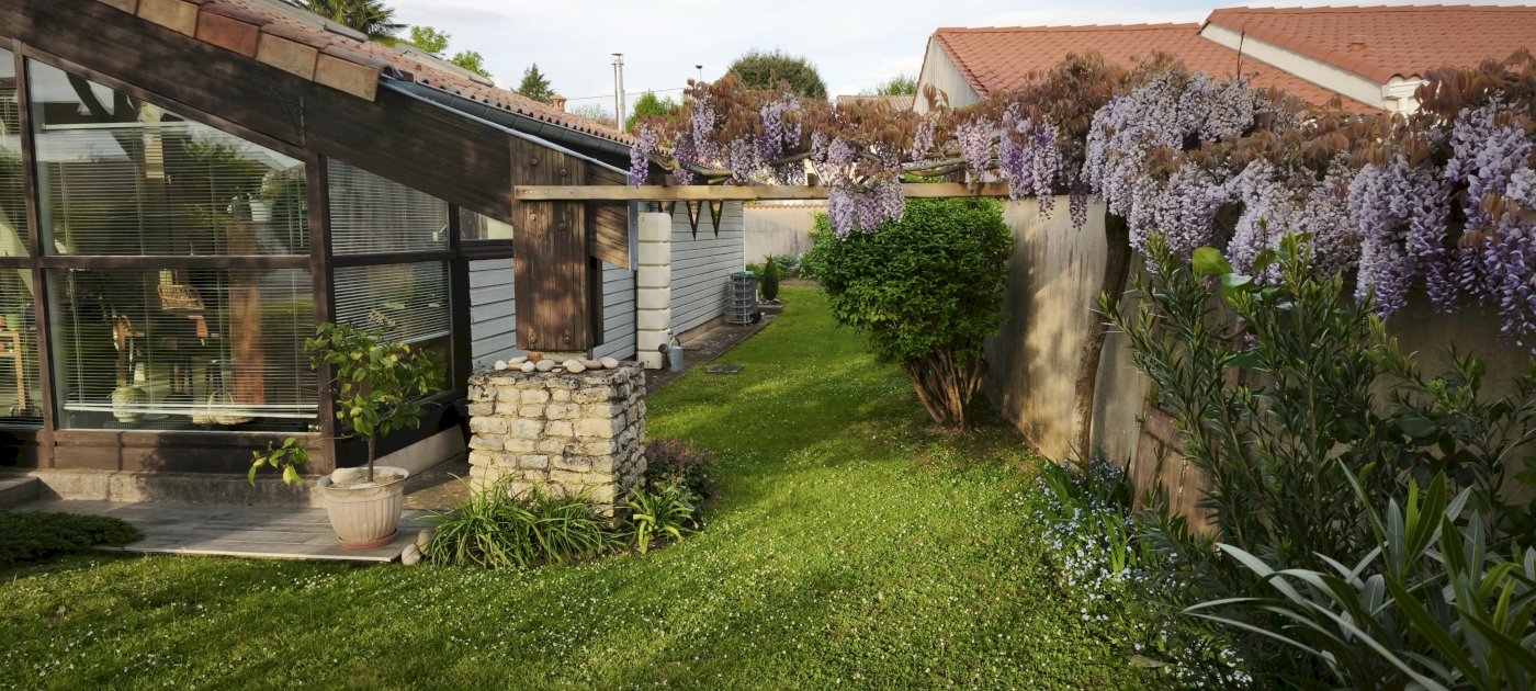 La maison est sur un terrain de 670 m², totalement clos et arboré, sans vis à vis.