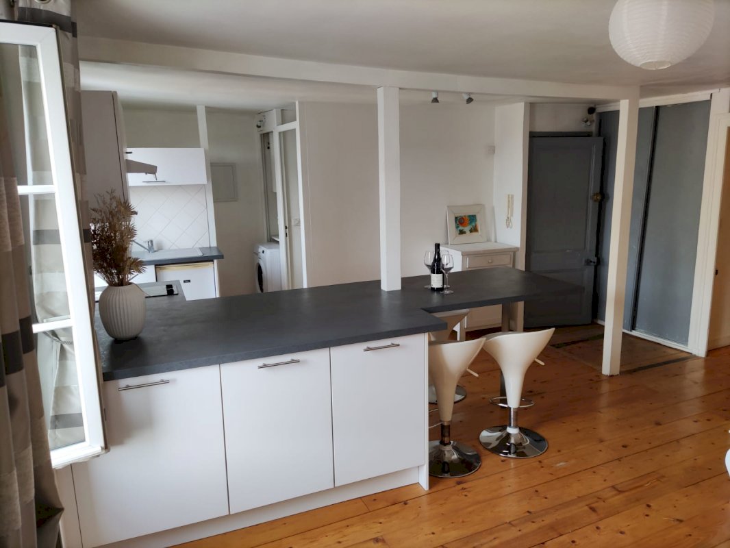 Nous vendons un agréable appartement T2 de 45 m2, situé dans une rue à arcades à 75 mètres du marché et au 3ème étage sur 4.