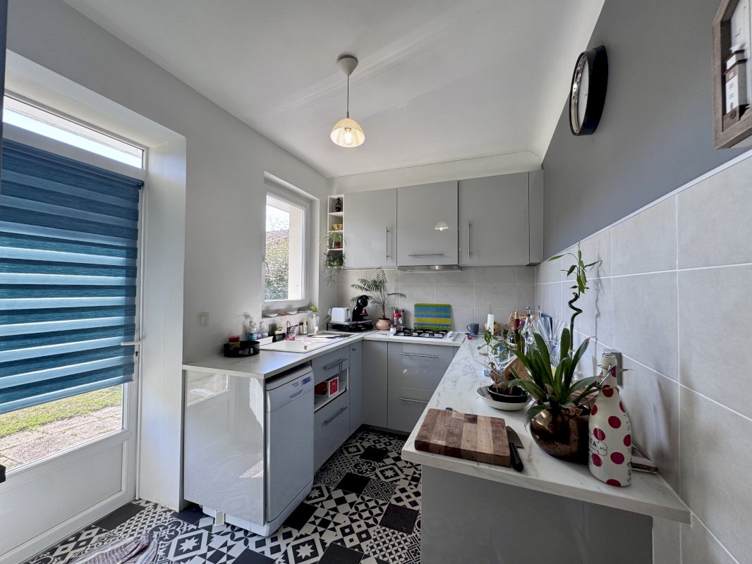 La maison est actuellement divisée en 2 appartements avec accès indépendants. La configuration permet d'ajouter un escalier central afin d'en faire une villa familiale.