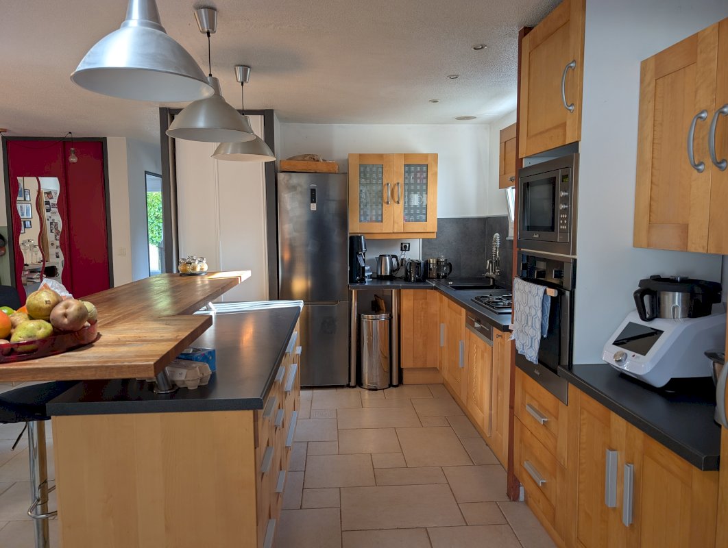 - cuisine équipée ouverte sur la pièce de vie.