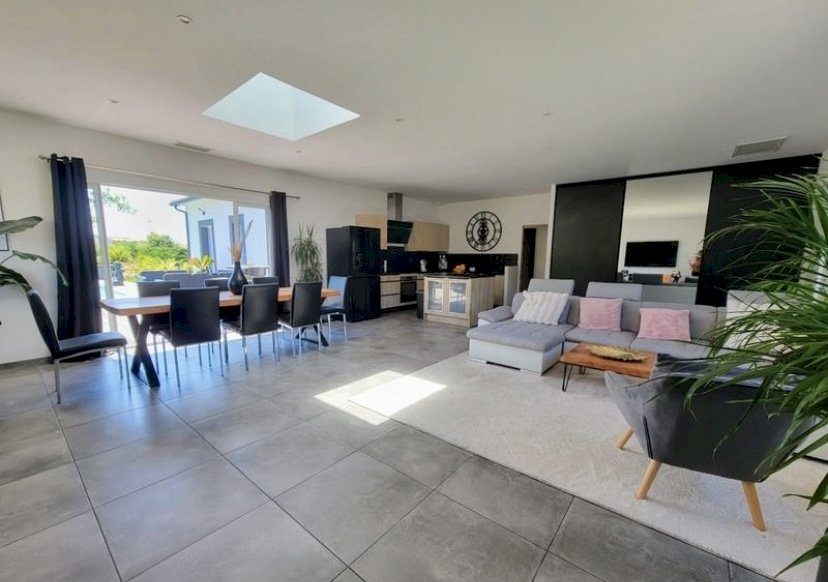 Dès l’entrée, vous découvrez une belle pièce de vie de 65 m², baignée de lumière naturelle grâce à son puits de jour. Le salon chaleureux s’ouvre sur une superbe cuisine équipée avec plan de travail en granit, idéale pour partager de beaux moments en famille ou entre amis.