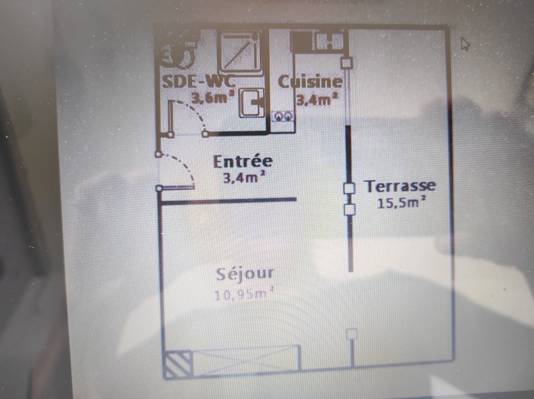 L'appartement se compose d'1 entrée, d'1 salle d'eau avec douche, wc, 1 séjour pièce de vie principale, 1cuisine équipée séparée.