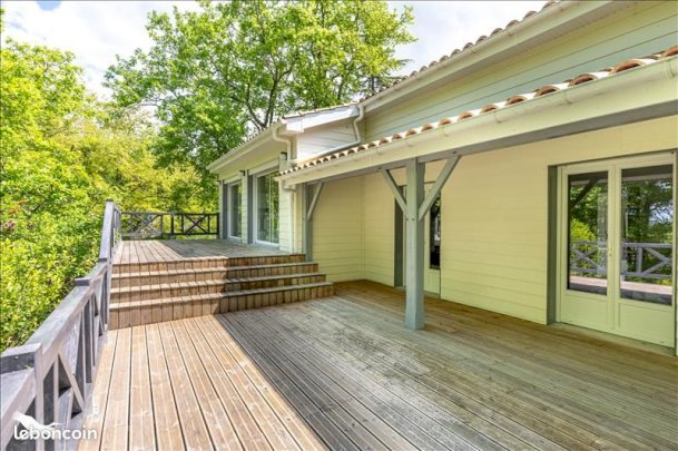 - terrasses en bois à plusieurs endroits, emplacements de parkings aériens sur l'arrière,