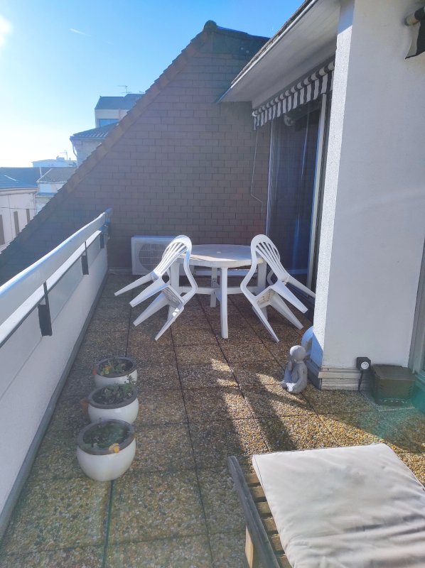 A l'extérieur 1 grande terrasse de 16m², orientée Sud Est.